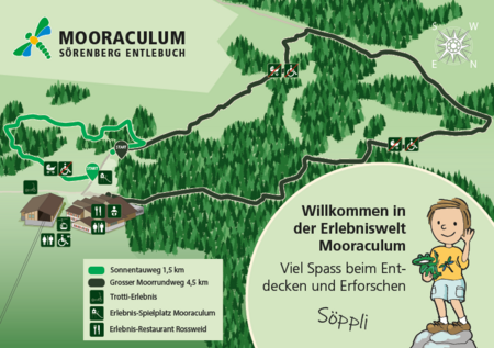Ein grosser kostenloser Erlebnis-Spielplatz rund ums mystische Thema «Moor und Moorlandschaften» wartet direkt bei der Bergstation der Gondelbahn Rossweid Sörenberg auf neugierige Forscherinnen und flinke Kletterer. Wissenschaftliche Themen werden kindgerecht mit Rätseln und spielerischen Experimentieraufträgen vermittelt.