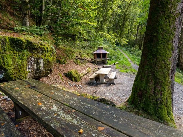 Surrounded by many trees, the spot is ideal for a short or longer break. The short ascent to the small waterfall is definitely worthwhile.