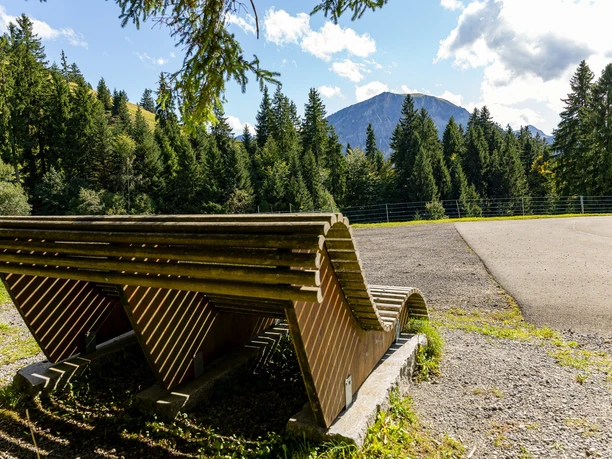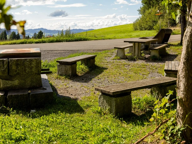 This fireplace is located at the end of the road from Finsterwald to Wissenenegg, which is very popular with walkers in winter and summer. In addition to three tables and the barbecue area, a large wooden lounger invites you to relax. Cars can be parked right next to the barbecue area.