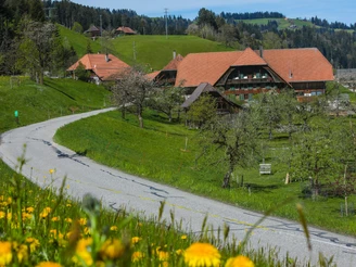 Starting from Turner, you hike downhill on this stage with views of the typical Emmental "Höger". After a short passage through open terrain, you hike along the edges of forests with their shady trees on this entertaining stage. At Vorder Risisegg, the tour takes you down to the pretty village of Trubschachen. Here you can spend some time in the Kambly Experienceand in the Aebi pottery, where you will not only find unique items but also a small but fine café.