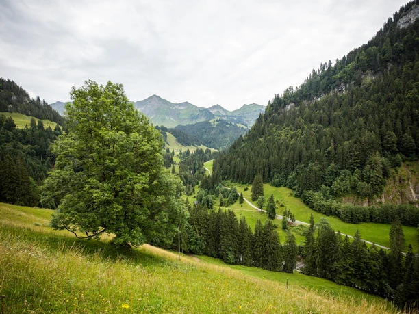 Ready for the hike? Simply follow the marked trail toward Salwideli / Kemmeribodenbad. Just behind Rossweid, the path enters a fern-rich blueberry-spruce forest and you feel like you are in another world. After a short stretch, the forest alternates with colorful moor landscapes dotted with pink glowing orchids and white tussocks of cotton grass. Let yourself be inspired by the beauty of nature. The legendary Schrattenfluh and the impressive Brienzer Rothorn range are your constant companions. Along the way, you can stop at the Bergwelten Salwideli or later visit the lovely Schneberg farm shop. The famous “Merängge” at the Hotel Kemmeribodenbad is a crowning finale to this hike.