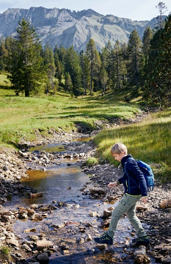 At the alp Tannisboden, cattle are summered during the summer months, and alpine cheese as well as other cheese specialties (mutsch, raclette, fine yogurt) are produced. Hikers and bikers can help themselves at the alpine kiosk and enjoy rustic alpine products at the herdsmen's hut with wonderful panoramic views – cheese, dried meat, drinks, and sweets.