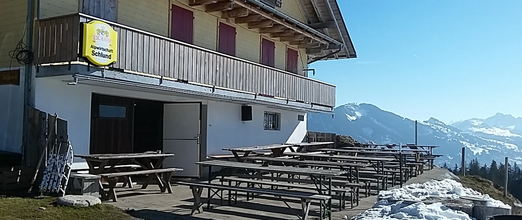 Le Schlund Beizli se trouve à 1'477 m d'altitude, au pied de la Schrattenfluh. En hiver, c'est l'endroit idéal pour faire une pause lors d'une randonnée hivernale ou d'une randonnée à ski. Des plats simples ainsi que des boissons froides et chaudes sont proposés.
