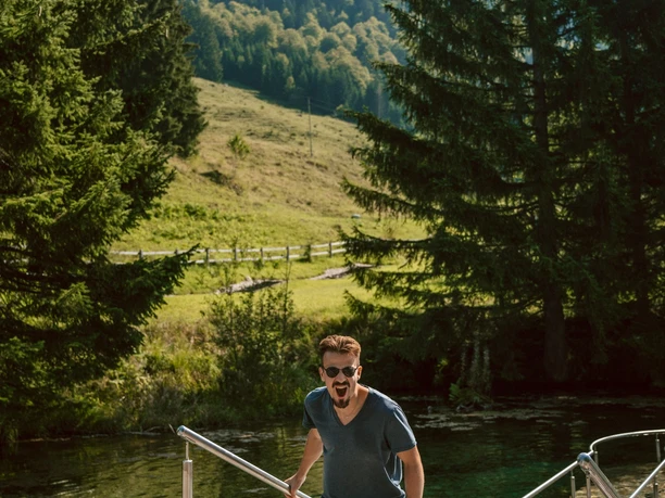 Le puissant parfum du jardin d’herbes coloré vous accueille et vous accompagne en pénétrant dans cette magnifique installation intégrée dans la nature pour la pratique du Kneippen, construite en 2003 au Schwandalpweiher. L’étang, cristallin jusqu’au fond, aux pieds du Schwändelifluh est mis en scène par des pontons en bois et des bancs – tous fabriqués en bois local. De jolies murailles en pierres encadrent ce tableau splendide. On raconte avec raison que c’est la plus belle installation Kneipp de Suisse.