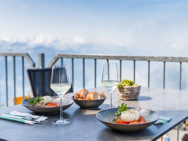 - Une entrée avec un verre de vin au restaurant d’altitude Brienzer Rothorn, canton de Lucerne