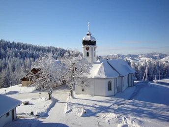 Après un bon déjeuner, un dessert ou un café-napps sur l'agréable terrasse ensoleillée, vous descendez le versant ensoleillé de la montagne en direction du petit First. Vous suivez le bord de la piste de ski, le sentier du conte de fées Wurzilla et revenez finalement au lieu de force de Heiligkreuz et point de départ de la randonnée hivernale. Une visite de l'église de pèlerinage en vaut la peine !